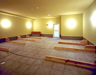 個人個人のスペースでの岩盤浴というより、岩盤の暖まっている部屋に入って、皆でタオルひいて雑魚寝って感じ 湿度はさほどありませんでした。